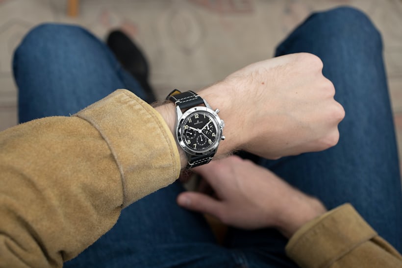 高い防水性を実現させるための大型のケースは、軽量のチタンを素材として用いることによって装着感にも配慮されている。自動巻き(Cal.CFB 1950.1)。25石。パワーリザーブ約38時間。Ti+DLCコーティング(直径44.6mm、厚さ 13.45mm)。500m防水。900,000円(税別)。5月発売予定